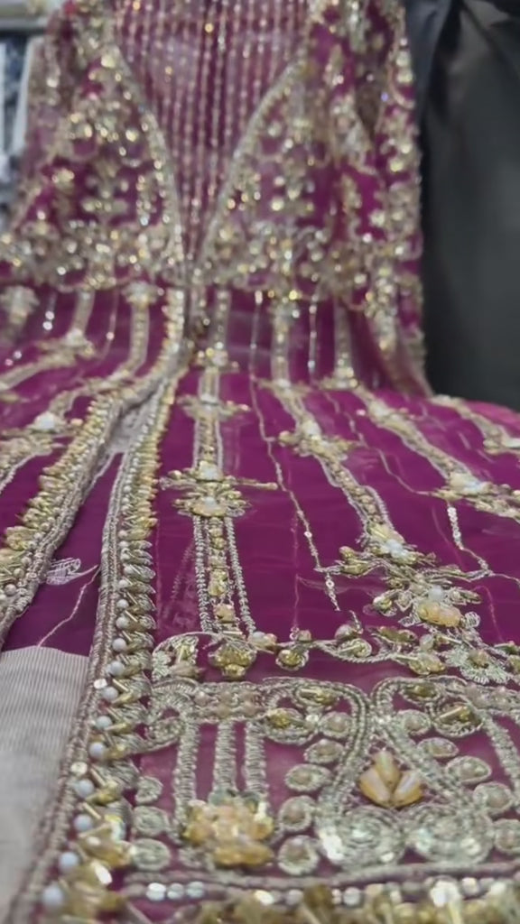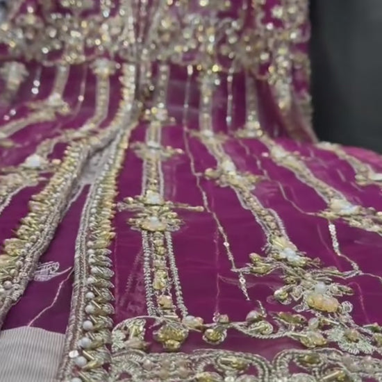 Embrace ethereal glamour in this stunning Hot Pink Open-Front Organza Kameez and Palazzo ensemble. Meticulously crafted from lightweight, sheer premium organza, this outfit is designed with a contemporary open silhouette that beautifully blends traditional grace with modern, airy structure. It is the perfect choice for Asian weddings, festive gatherings, and formal celebrations where you want to make a sophisticated statement.
