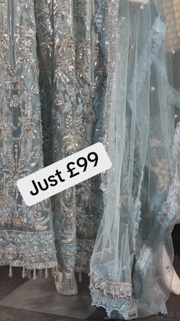 Elevate your wardrobe with this captivating gradient blue dress, meticulously crafted from premium net fabric. Designed to leave a lasting impression at any occasion, it’s available in both unstitched and pre-stitched options for a flawless, personalized fit.